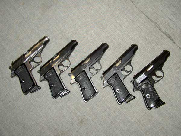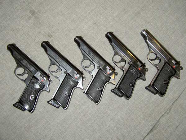 Terza da sinistra nella foto. Buone condizioni. Tracce di sbrunitura da fondina. Rigatura 95%.