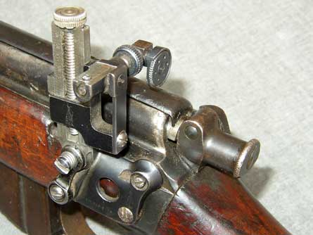 PARKER’S CLOSE UP S.M.L.E. SIGHT PLATE (PIASTRA DIOTTRA VICINA PER S.M.L.E.) Codice S.P.2 Equivalente alla standard tranne che viene posizionata ¾ di pollice più indietro. Per montare la diottra sul fucile ENFIELD N°1. Insieme alla piastra venivano fornite una vite corta con relativa molla e una vite lunga.