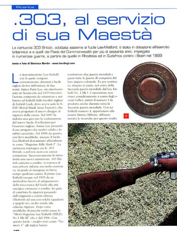 | Sul numero di Novembre 2006 di Armi Magazine un ampio servizio di Gianluca Bordin ( www.bordingl.com ) sulla cartuccia .303 British e la sua ricarica. Per realizzare le prove è stato utilizzato uno dei nostri Enfield Nr. 4 di produzione Savage. | ||