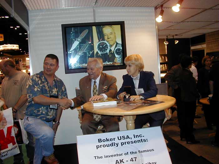 | NELLO STAND DELLA BOKER (FABBRICANTE DI COLTELLI) ERA PRESENTE KALASHNIKOV CHE HA FIRMATO AUTOGRAFI E CHIACCHIERATO CON IL PUBBLICO | ||